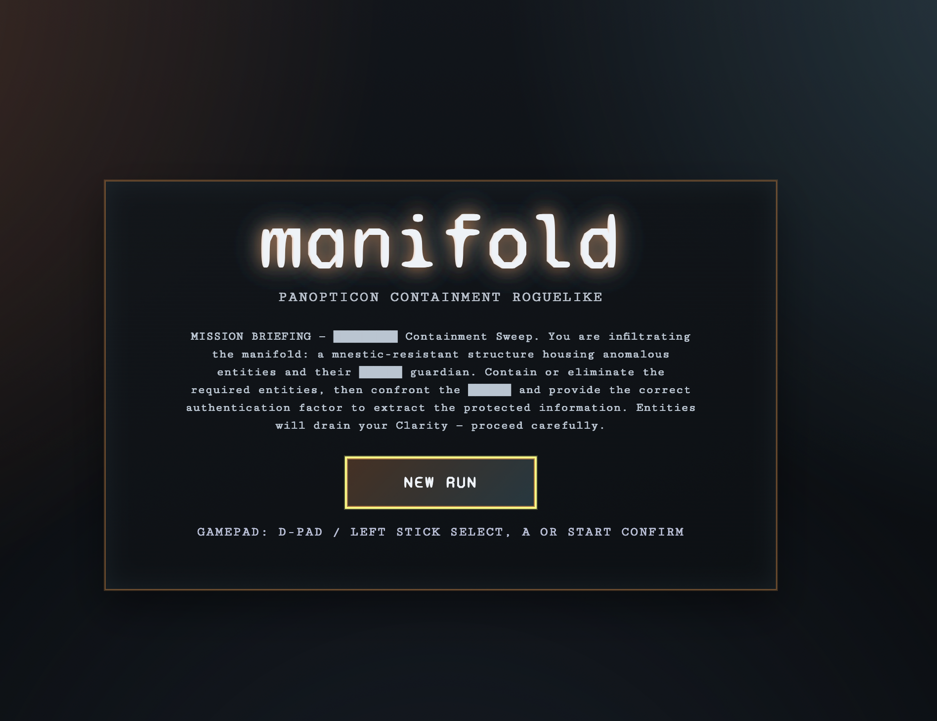 MANIFOLD is a turn-based roguelike set inside a government research site modeled after a panopticon, built to contain entities unfit for rational space.